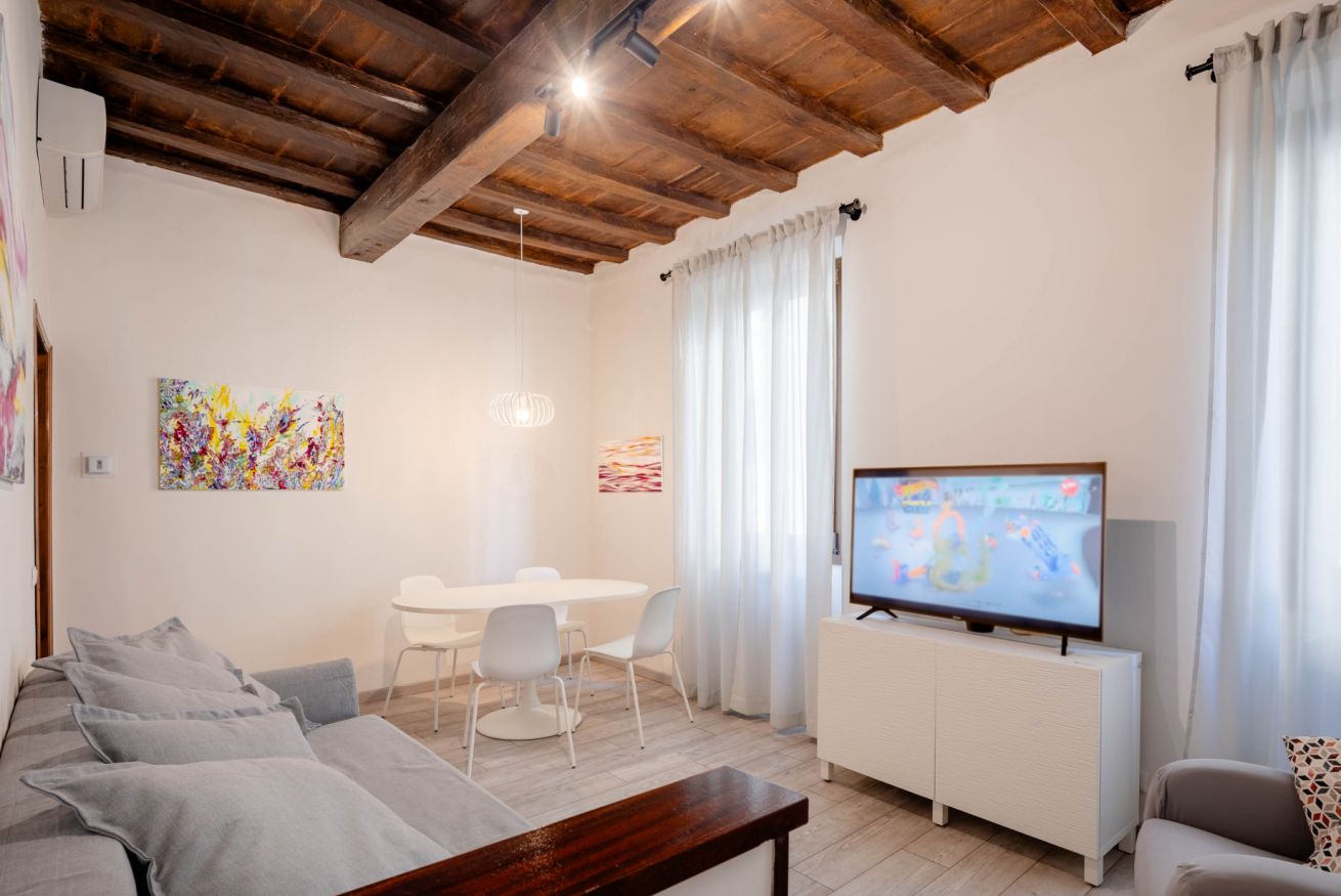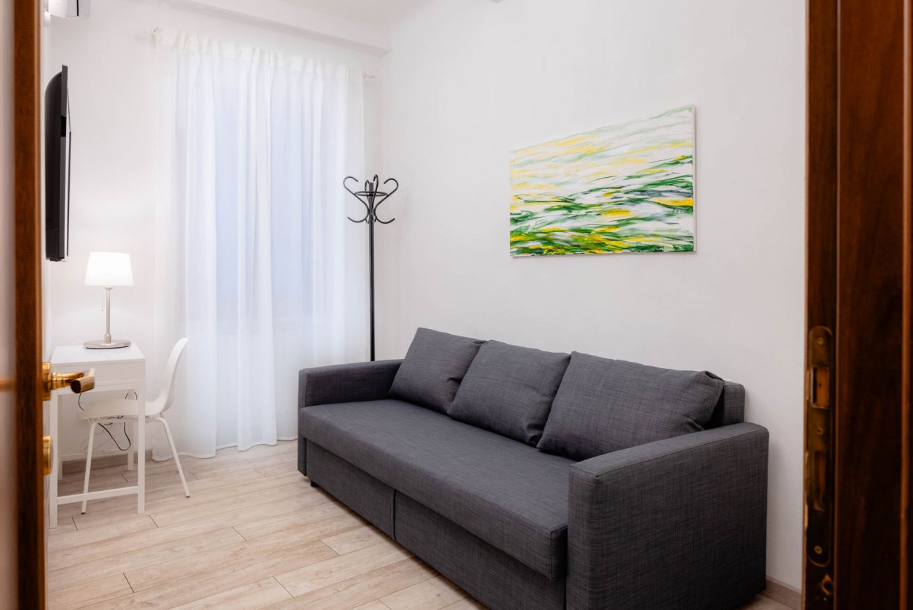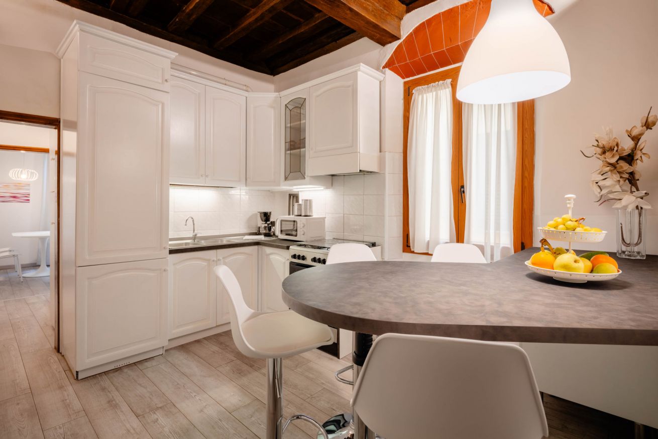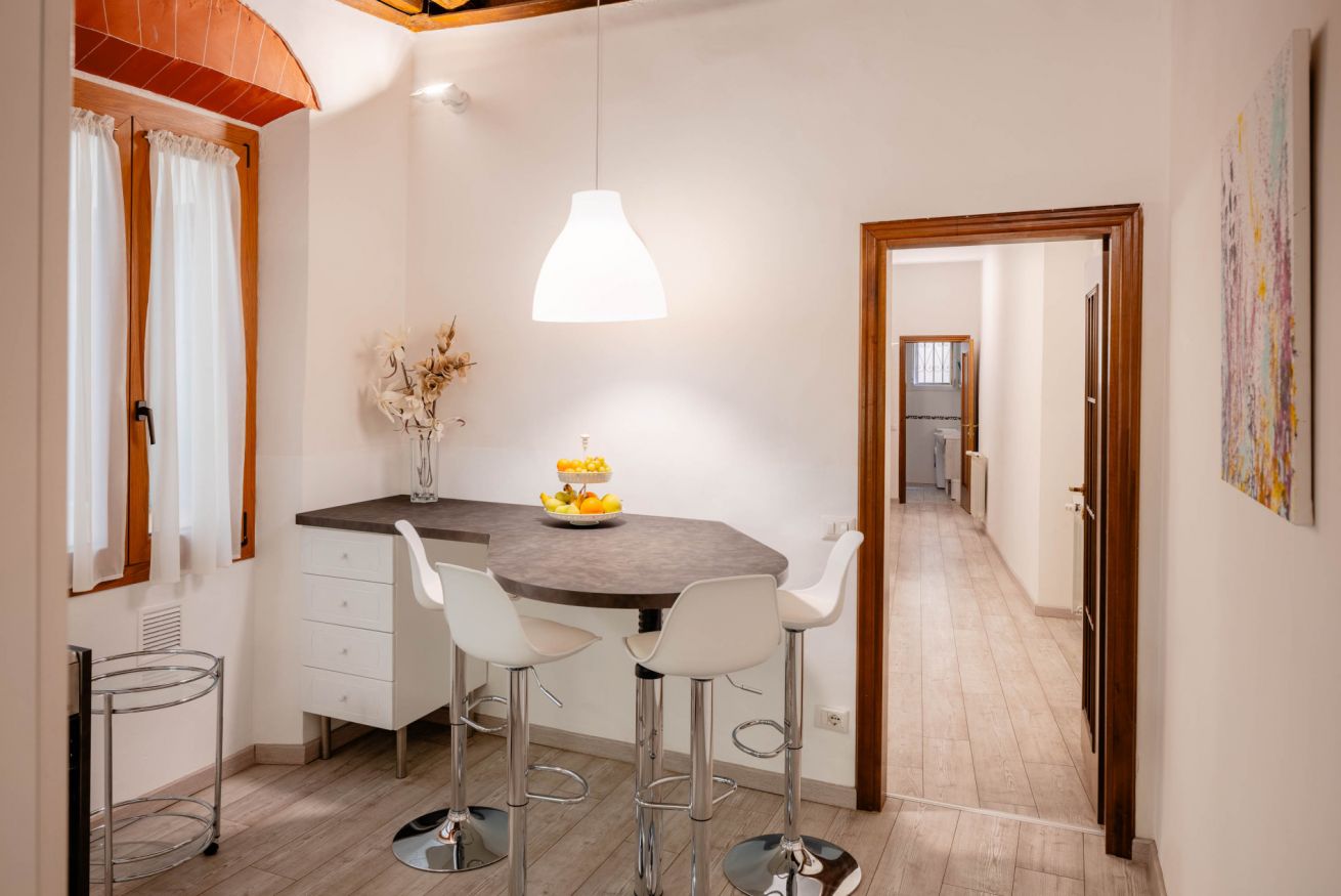 L’appartamento dispone di due camere matrimoniali, due soggiorni – uno di rappresentanza all’ingresso, l’altro più intimo, con la possibilità di allestire un divano letto matrimoniale – oltre a due bagni con doccia e una cucina privata completamente accessoriata, perfetta per preparare sia spuntini veloci che piatti più elaborati, con la stessa libertà di casa. Pensato per ospitare comodamente da 4 a 6 persone, è la soluzione ideale per famiglie o gruppi di amici che desiderano vivere insieme l’esperienza fiorentina, mantenendo al tempo stesso spazi privati e indipendenza.