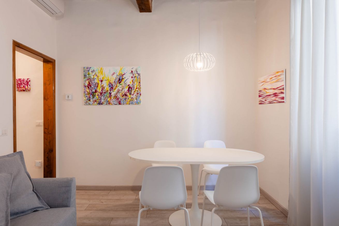 Nel cuore del centro storico fiorentino, in Via del Porcellana 14, il Novella Art Gallery è un ampio appartamento di 120 mq, situato al secondo piano di una palazzina tradizionale senza ascensore. Gli ambienti, dallo stile minimal e accogliente, offrono spazi ben distribuiti e funzionali, ideali per un soggiorno condiviso ma confortevole.